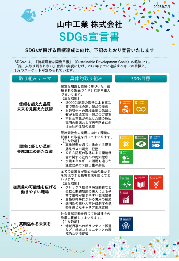 山中工業株式会社は、国連が提唱する